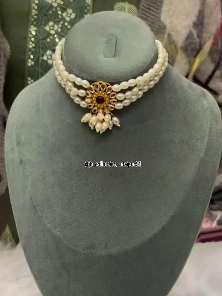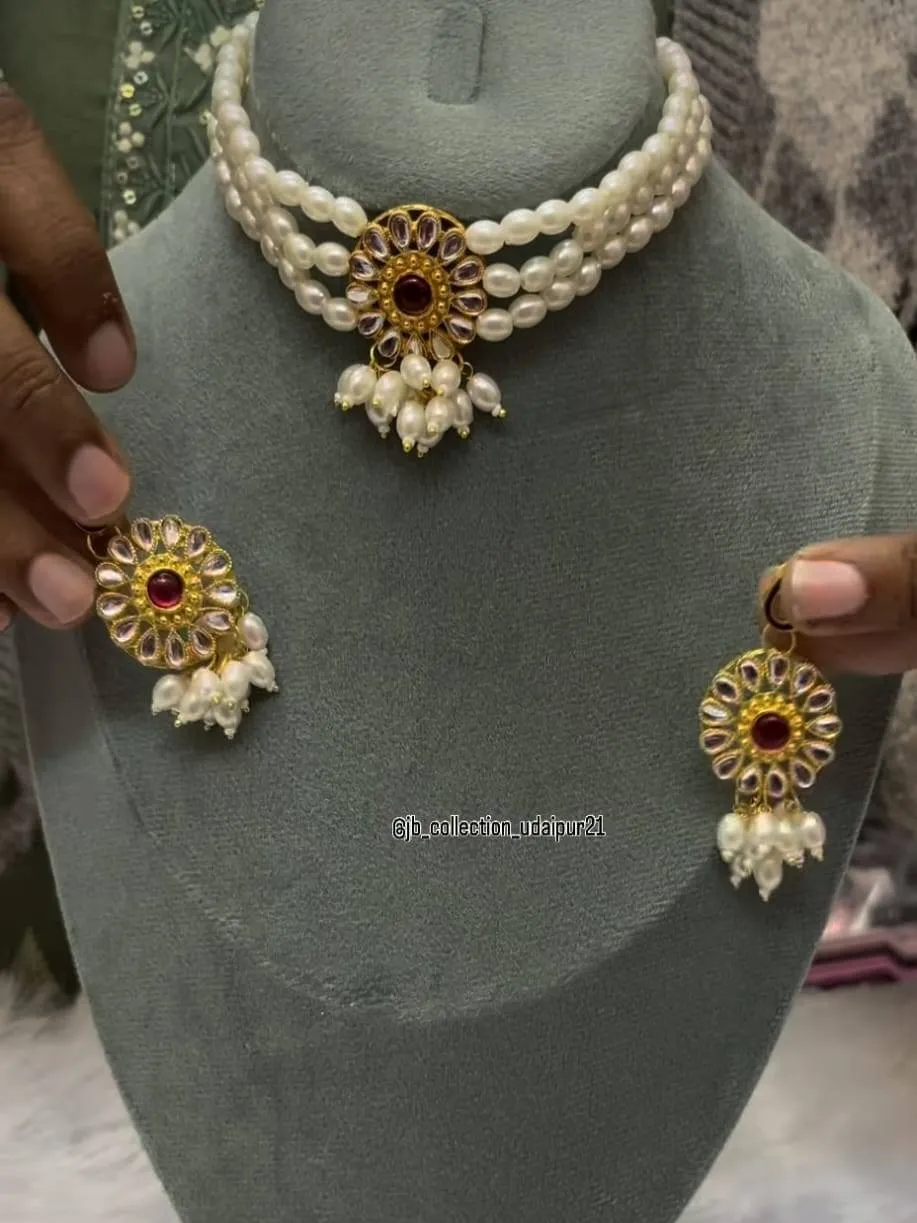 Beautiful Pearl Choker Set with earrings perfect for both Sarees and Poshak